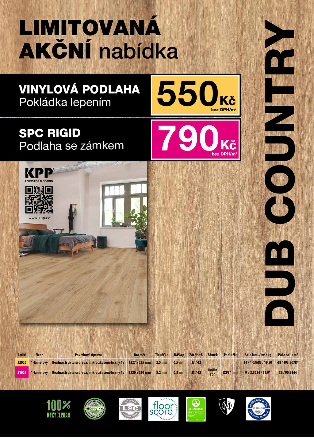 Limitovaná akční nabídka - Dub Country SPC + vinylová podlaha