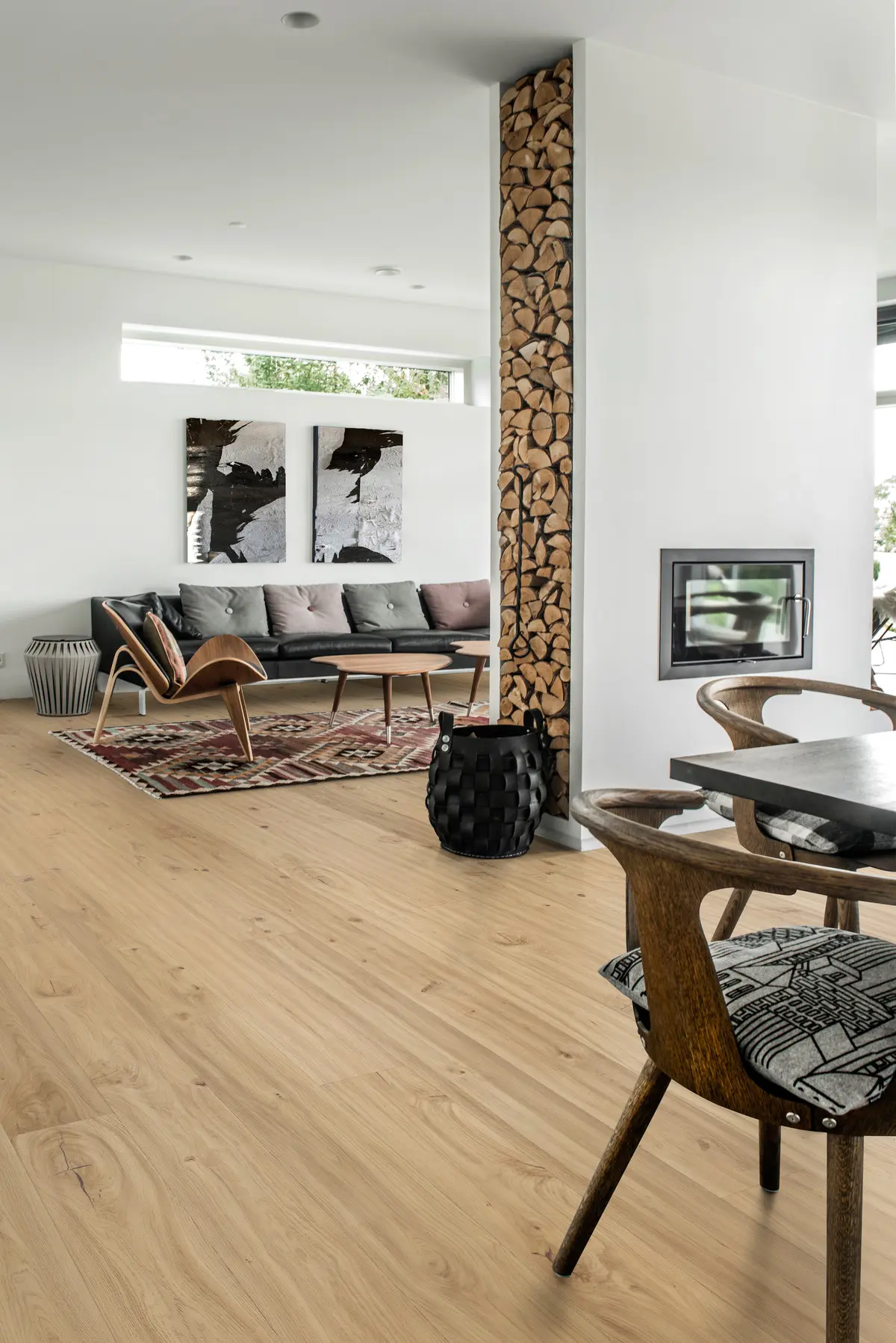 Skutečná klasika, podlaha z přírodního dubového dřeva (např. Kährs, kolekce Lux, Dub Sun) dodá domovu pocit tepla a přirozené krásy, na nic si nehraje, je sama sebou. V závislosti na designu mohou být živé nebo klidné, rustikální nebo klidně elegantní, od světlých a vzdušných až po syté a zlatavé.